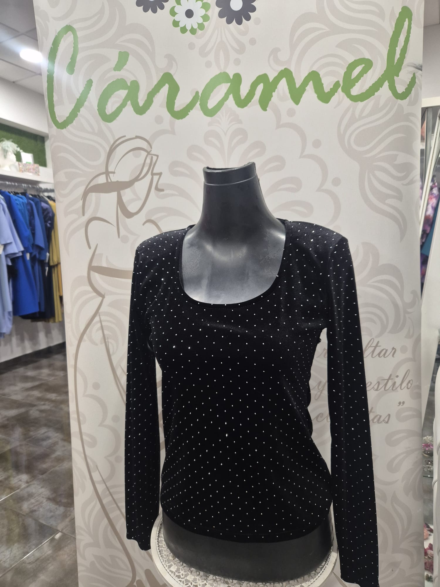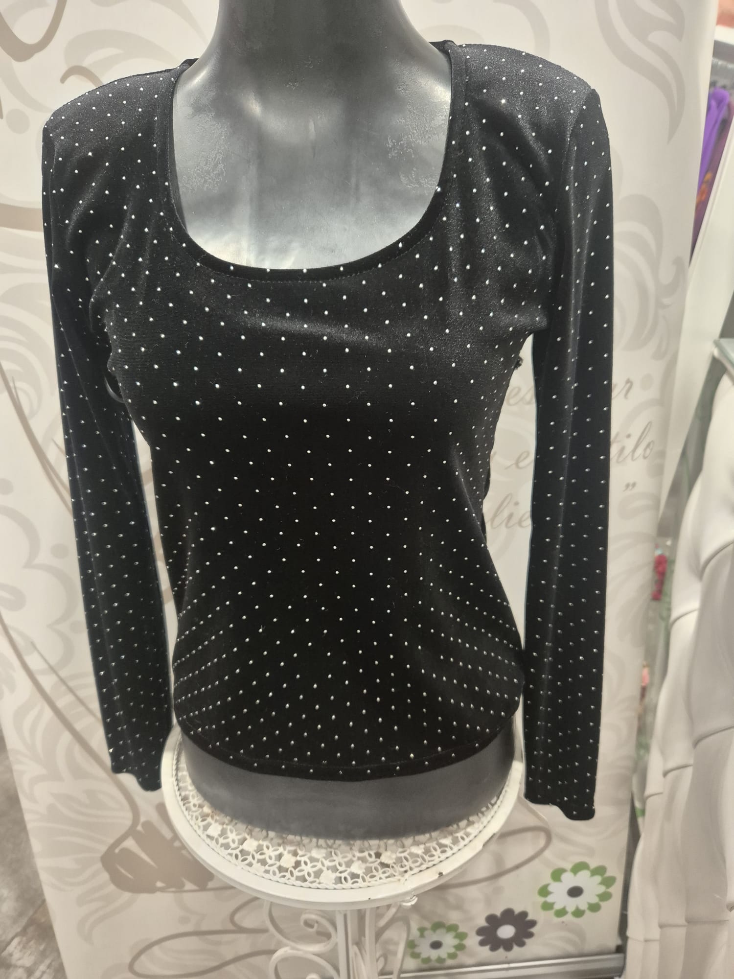 Top con brillo con fondo de terciopelo, confeccionado en talla única