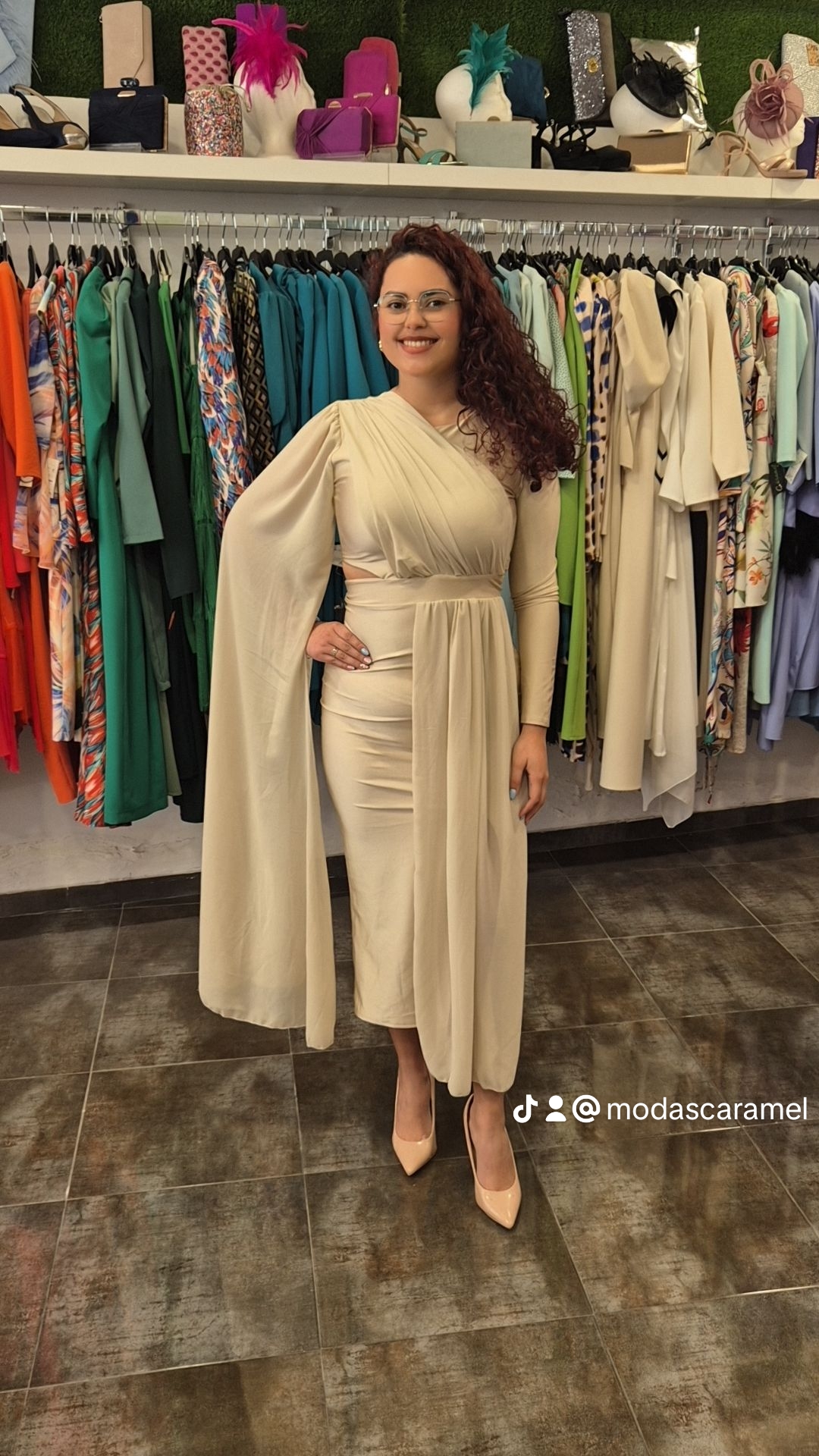 Vestido confeccionado en talla única perfecto para tallas entre 36 y 40, El corte del vestido es cut out con manga de saga tipo capa.