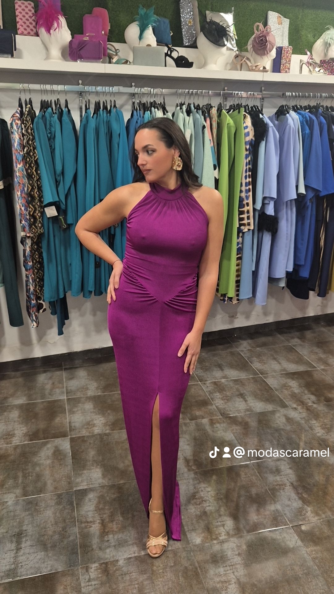 Vestido largo al cuello confeccionado en talla única perfecto para tallas desde 36 hasta 40